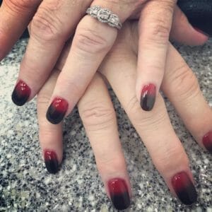 De nagels met de kersjes zijn echte zomernagels. Rood kun je ook heel goed gebruiken met zwart, maar natuurlijk ook met ander kleuren. Bij valentijn wordt rood vaak in combinatie met roze gebruikt.