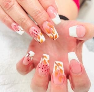 French manicure kun je altijd gebruiken en in de herfst passen we het gewoon aan. Een herfstprint erbij en je nagels zijn klaar voor de herfst. French manicure past bij elk jaargetijd en bij elke gelegenheid, omdat het neutraal is en je kunt het makkelijk aanpassen!