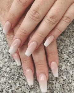 De ombre nagels zijn heel populair. Deze stijl lijkt op de french manicure, maar de scheiding tussen de nagel en de witte rand is vervaagt. Deze stijl wordt ook wel “babyboom” genoemd. Net als de french manicure past deze stijl overal bij, omdat het een natuurlijke stijl is. Je nagels zien er mooi en verzorgd uit.
