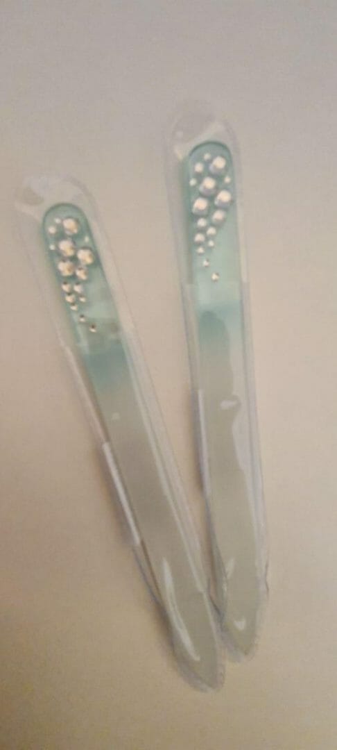 Puntige glasvijl van goede kwaliteit,handig meeneembaar formaat in de kleur licht blauw..