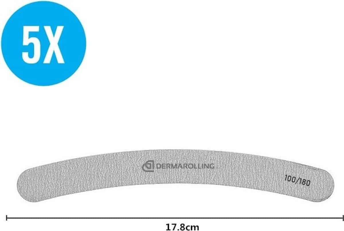 Professionele nagelvijl in Banana vorm met een grit van 100 en 180 (grof en middel), Professionele nagelvijl in Banana vorm met een grit van 100 en 180 (grof en middel), ideaal voor iets minder dikker nagelverlengingen, zoals de meeste tips en het wegwerken van oneffenheden, ribbels en verkleuringen en voor het vormgeven van de vrije rand van de de natuurlijke nagel. Grit soorten: – 80/100: zeer grof-grof, voor productverwijdering van acryl en inkorten van nagelverlengingen (acryl). Niet geschikt voor gebruik op de natuurlijke nagel. – 100/180: grof-middel, geschikt voor inkorten van nagelverlengingen (acryl) en iets minder dikker nagelverlengingen, zoals de meeste tips, – 180/240: middel-fijn, geschikt voor iets minder dikker nagelverlengingen, zoals de meeste tips en het wegwerken van oneffenheden, ribbels en verkleuringen en voor het vormgeven van de vrije rand van de de natuurlijke nagel. Grit: 180/240 (aantal vijl deeltjes per vierkante centimeter)